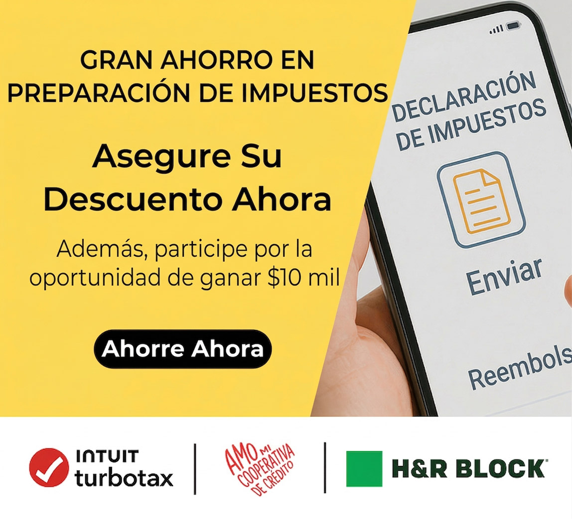 Como socio de CRCU, puedes ahorrar mucho en la preparación de impuestos con descuentos exclusivos para socios. Puedes ahorrar 20% en TurboTax® o hasta $25 en servicios de preparación de impuestos en oficina de H&R Block.