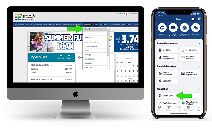 Para ayuda personal con Efectivo Rápido, envíenos un mensaje, pase por su sucursal de CRCU del vecindario, o llámenos al (800) 238-3228.