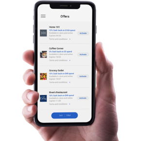 Cuando te unes, podrás activar ofertas contra la cuenta corriente que usaste al unirte. Para encontrar ofertas, desplázate por las ofertas de comerciantes disponibles y selecciona las que deseas activar. Una vez activadas, compra en esos comerciantes – ya sea en línea o en tienda o ambos – dependiendo de la oferta. Después de hacer una compra calificada, la oferta se aplicará automáticamente y recibirás dinero en efectivo de regreso en tu cuenta corriente hasta 30 días después de que se canjee la oferta.